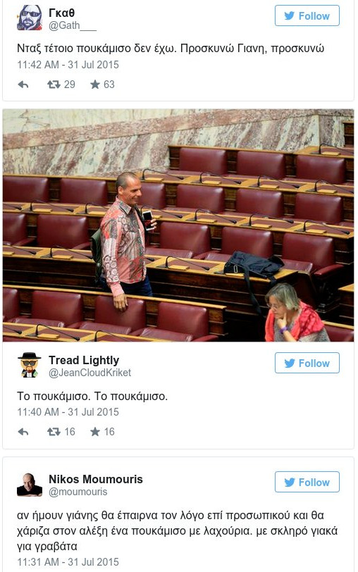 To Twitter ξεσαλώνει με το πουκάμισο τεντόπανο Βαρουφάκη